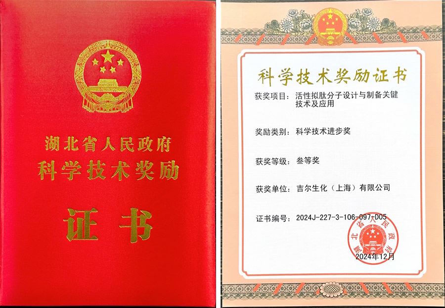 热烈祝贺吉尔生化科研成果荣获2024年湖北省科技进步三等奖